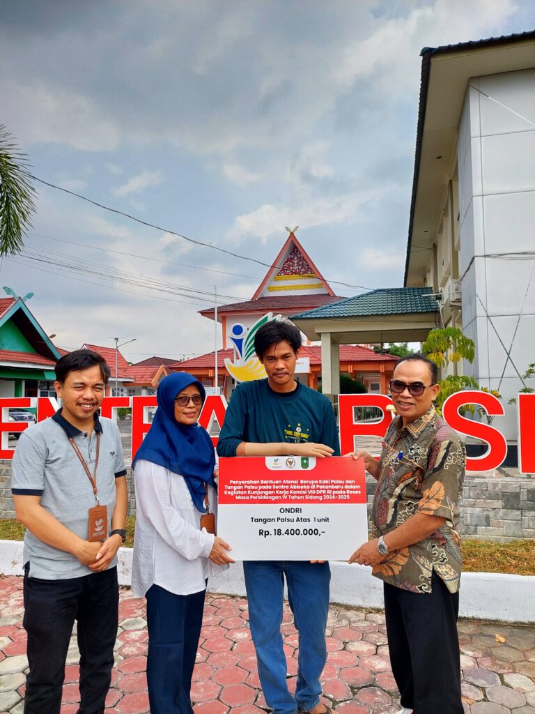 Payakumbuh — Kepala Dinas Sosial Kota Payakumbuh diwakili Sekretaris, B. Nasution turut mendampingi dua warga disabilitas asal Kota Payakumbuh menerima bantuan kaki palsu dan tangan palsu dari Sentra Abiseka Kemensos RI di Pekanbaru. Penyerahan bantuan langsung dilakukan di Kantor Sentra Abiseka, Jumat (25/07/2025).