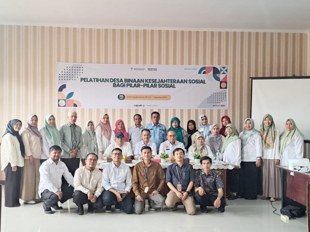 Payakumbuh — Dinas Sosial Kota Payakumbuh bersama Balai Besar Pendidikan dan Pelatihan Kesejahteraan Sosial (BBPPKS) Regional I Sumatera menggelar Pelatihan Desa Binaan Kesejahteraan Sosial bagi pilar-pilar sosial dan keluarga penerima manfaat (KPM) di Kota Payakumbuh. Pelatihan berlangsung selama 4 hari dari tanggal 29 Juli sd. 1 Agustus 2025. Pelatihan berlangsung di dua tempat yaitu di Aula Kantor Dinas Sosial dan Aula Kantor Camat Payakumbuh Barat.